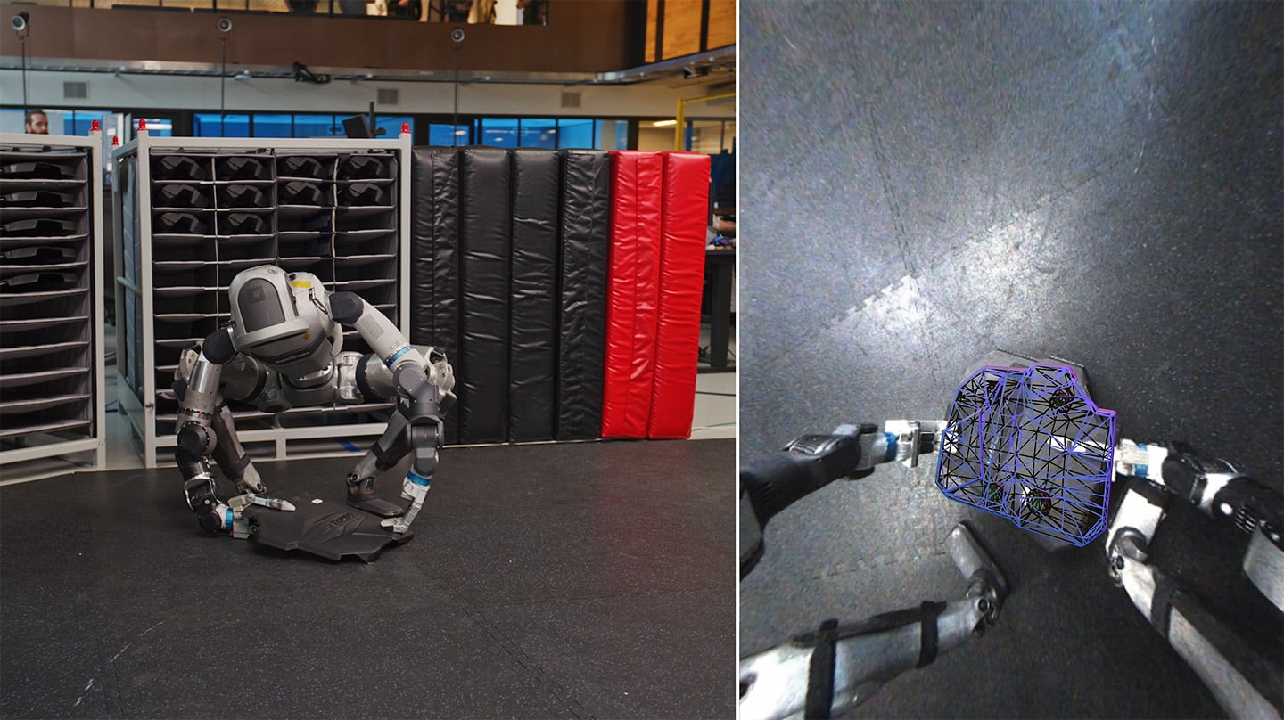 Atlas is autonomously moving engine covers between supplier containers and a mobile sequencing dolly. The robot receives as input a…